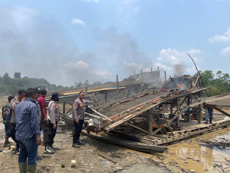 Cegah PETI, Polsek Peranap Bakar Rakit Dan Himbau Warga Hentikan Kegiatan Penambangan Illegal