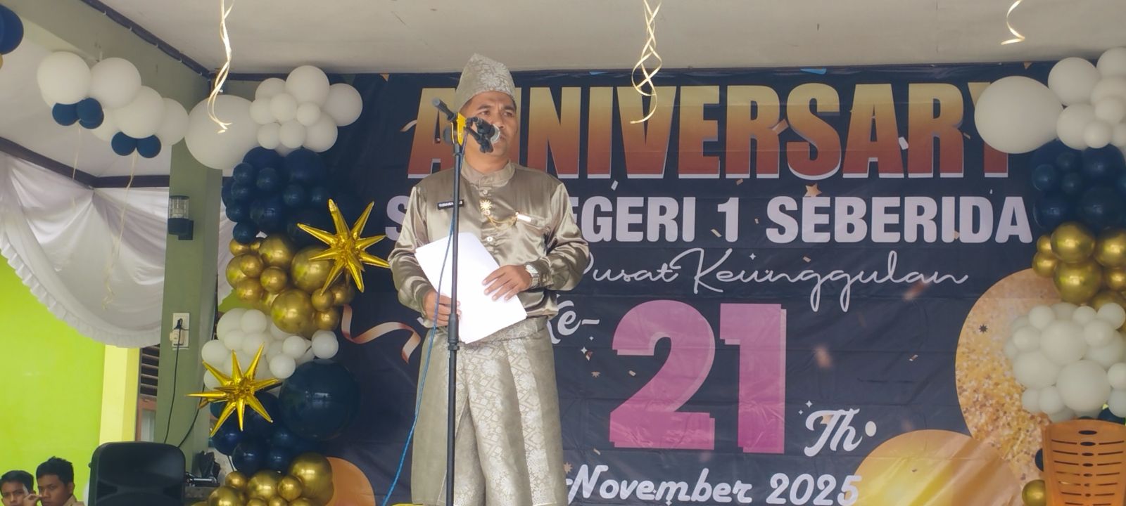 Kepala SMK Negeri 1 Seberida, Gunawan Sasmito, S.Pi., M.Si., dalam sambutannya menyampaikan bahwa perayaan tahun ini mengangkat tema “Pengabdian, Menggapai Visi Pendidikan Unggul”. Tema tersebut menggambarkan semangat sekolah untuk terus meningkatkan kualitas pendidikan vokasi dan memperluas ruang kreativitas siswa.
