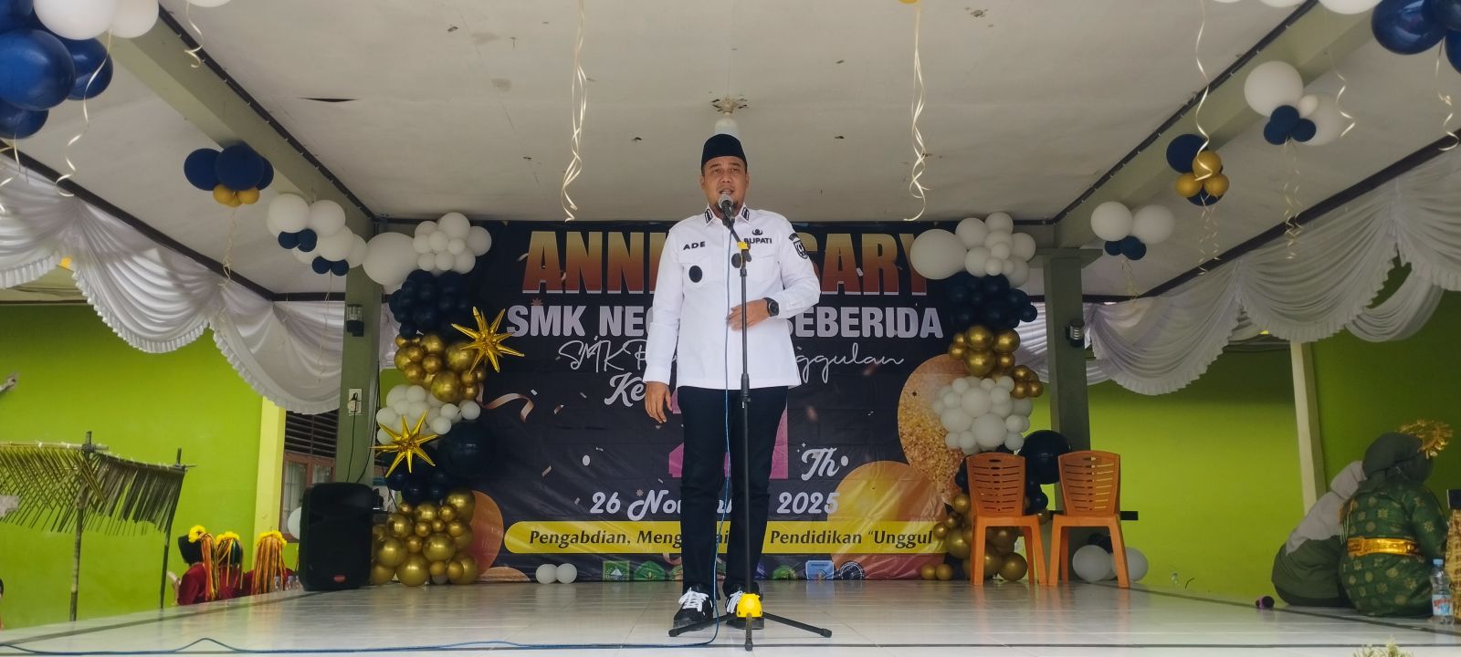 INHU – Perayaan Anniversary ke-21 yang dirangkaikan dengan Gelar Karya Expo SMK Negeri 1 Seberida berlangsung meriah dan penuh antusiasme, Rabu (26/11/2025). Kehadiran Bupati Indragiri Hulu (Inhu), Ade Agus Hartanto, menjadi kebanggaan tersendiri bagi keluarga besar sekolah. Setibanya di lokasi, Bupati disambut hangat oleh para guru, siswa, serta jajaran sekolah. Turut hadir mendampingi, Camat Seberida Agus Rianto, Kapolsek Seberida Kompol Yudha Efiar, Anggota Dewan Moc Rokhim, Dewan Pendidikan Kecamatan Seberida Yusnita, dan sejumlah Kepala OPD. Hadir juga tamu undangan lainnya.