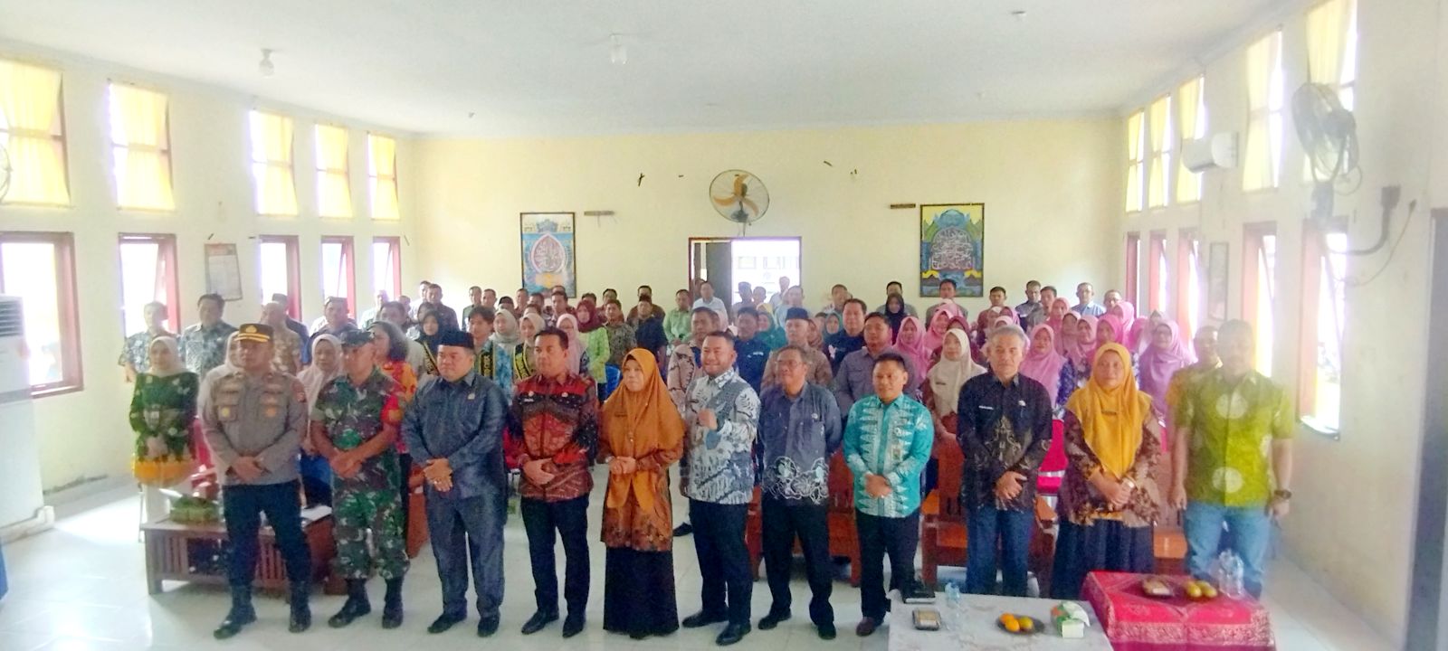Kegiatan berlangsung di aula kecamatan dan dihadiri unsur pemerintah daerah, legislatif, TNI-Polri, serta perwakilan desa dan kelurahan.